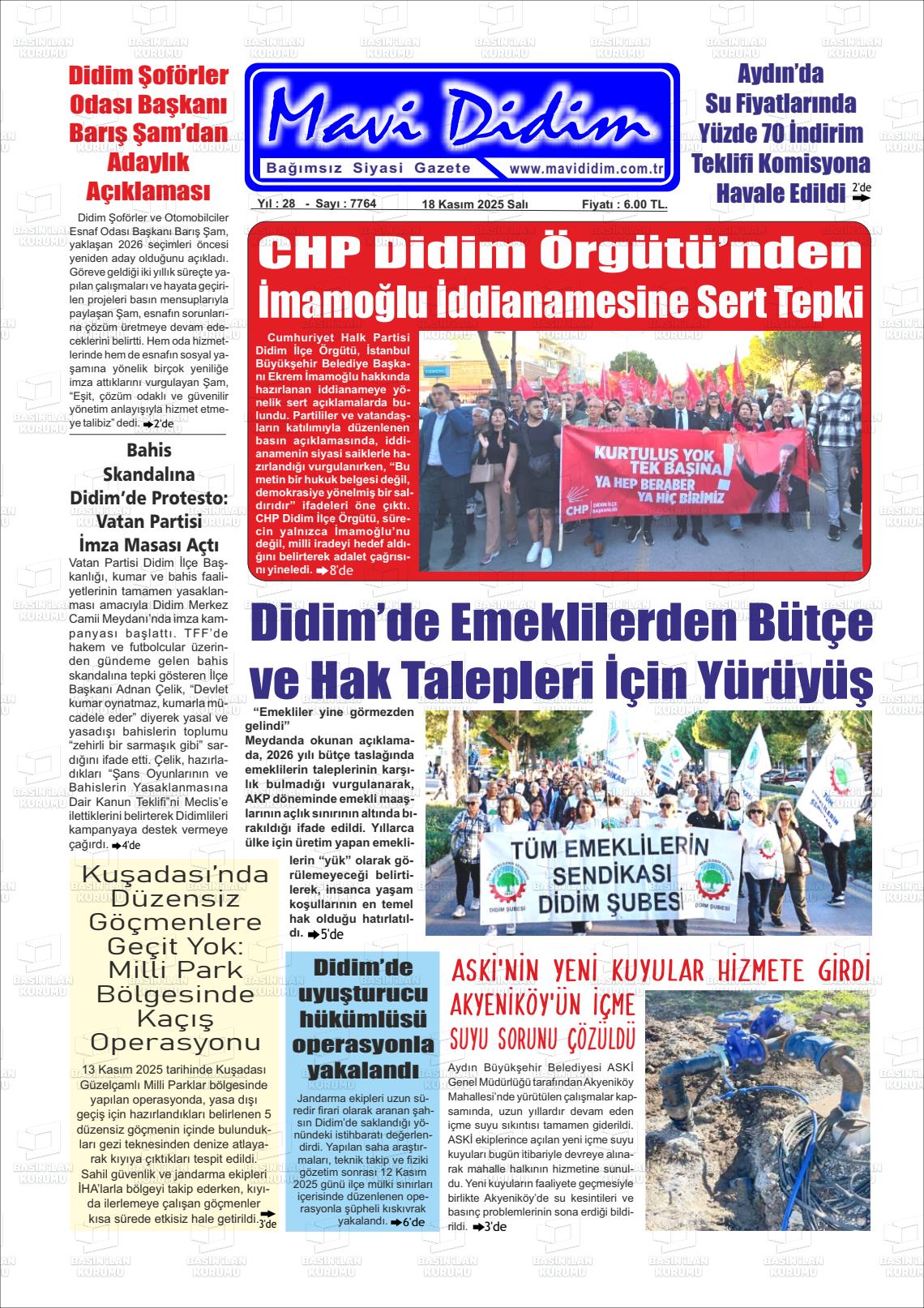 Aydın Yerel Gazeteleri 03 Mart 2026, Salı Günü Manşeti
