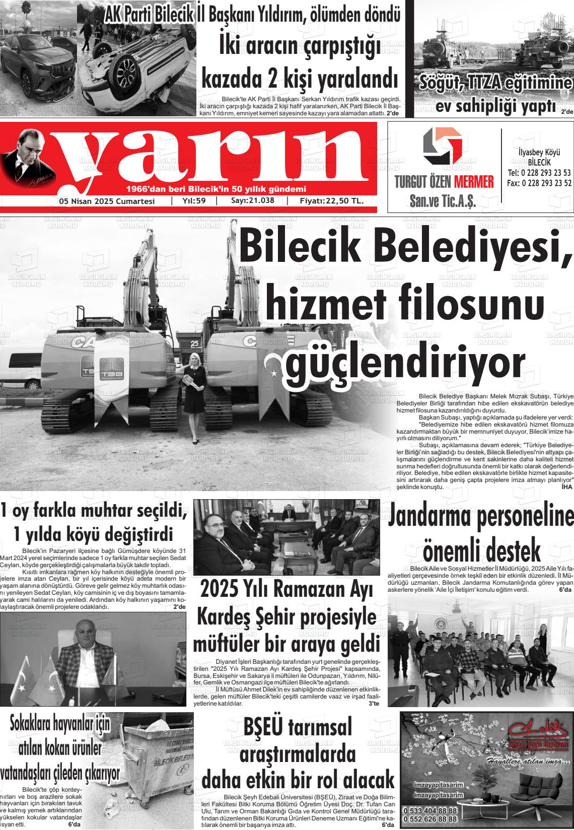 Bİlecİk Yerel Gazeteleri 11 Ocak 2026, Pazar Günü Manşeti