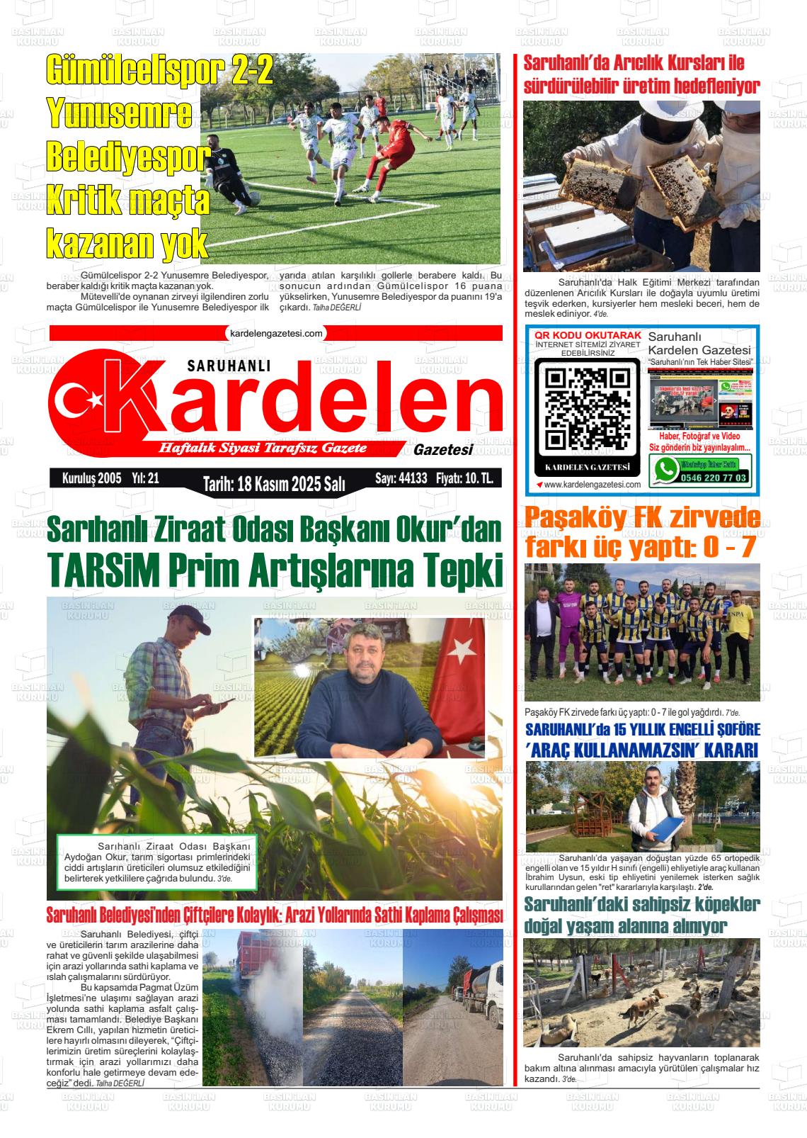 Manİsa Yerel Gazeteleri 18 Kasım 2025, Salı Günü Manşeti